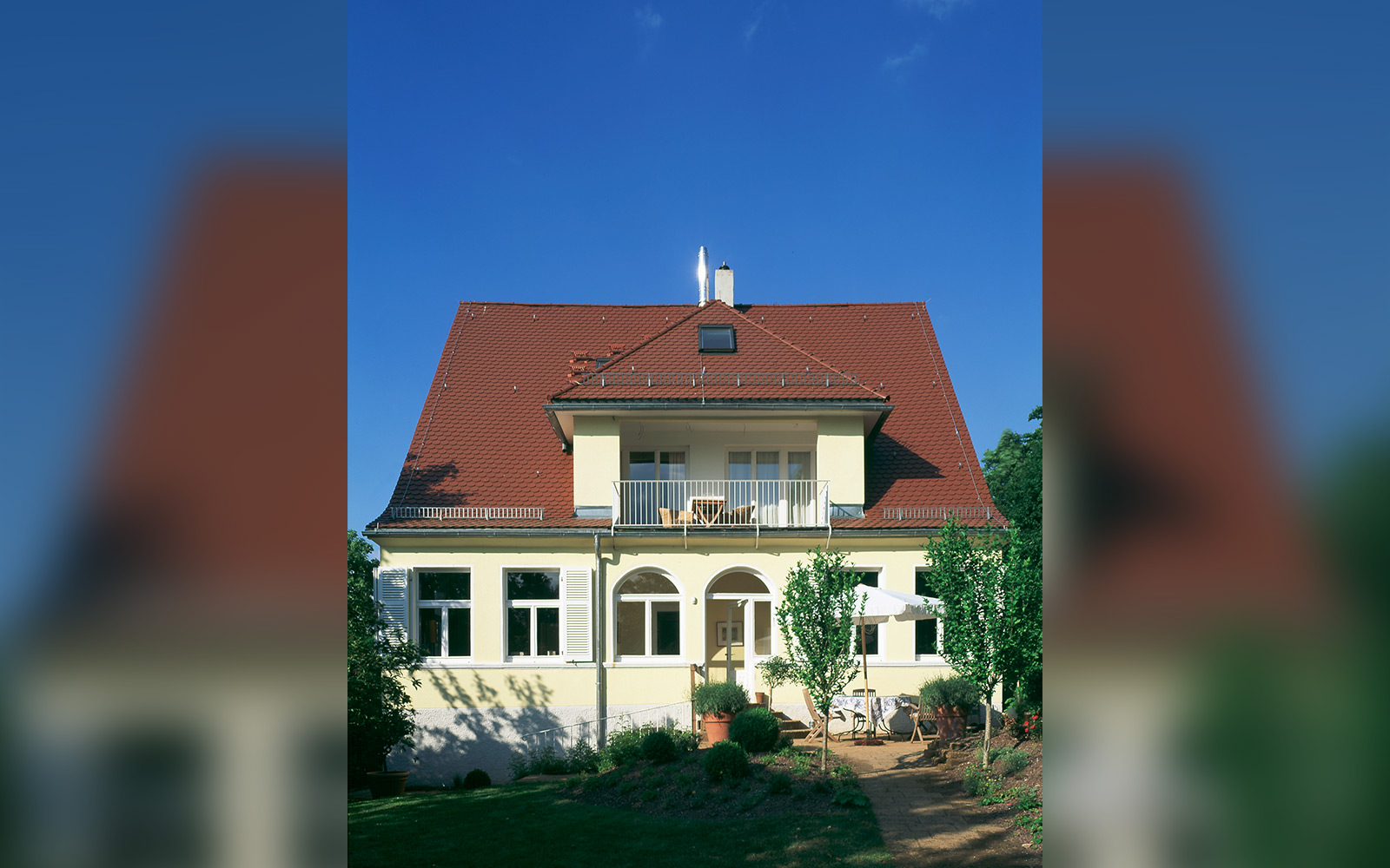 Die Jugendstilvilla in Hanglage aus dem Jahr 1911 fällt vor allem durch ihre ungewöhnliche Erschließung, eines circa 30 Meter langen, spritzbetonverkleideten Tunnel, der von der Straße in den Felshang hinein führt auf.
